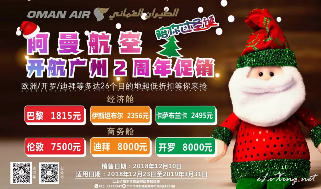 购票日期: 仅2018/12/10当天 旅行日期:适用于2018/12/23-2019/3/31 商务舱促销适用于春节 价格条款及细则: *以上票价均不含燃油附加费及税费 *特价舱位限量供应,以系统查询价格为准 *特价机票不得退票和 ...