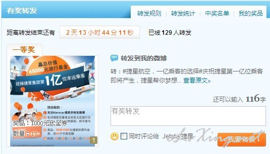 庆祝捷星第一亿位乘客即将产生,捷星大奖帮你实现旅行梦想 #捷星航空,一亿乘客的选择#庆祝捷星第一亿位乘客即将产生,说出你的亚太区梦想旅行地,捷星帮你梦想成真!10月30日-11月16日(17:00)期间,关注@jetstar ...