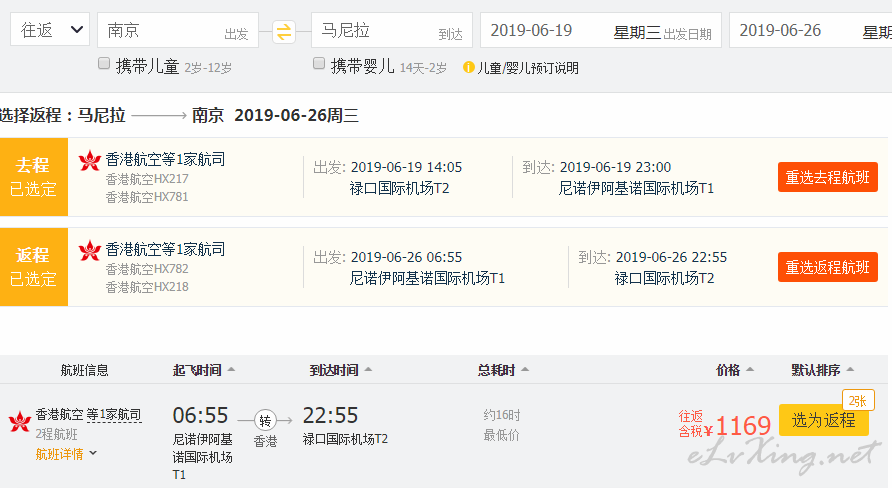 港航 南京往返马尼拉1100