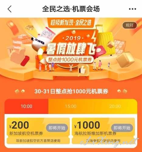 飞猪三个整点抢200新航和1000海航拉斯维加斯券! ...