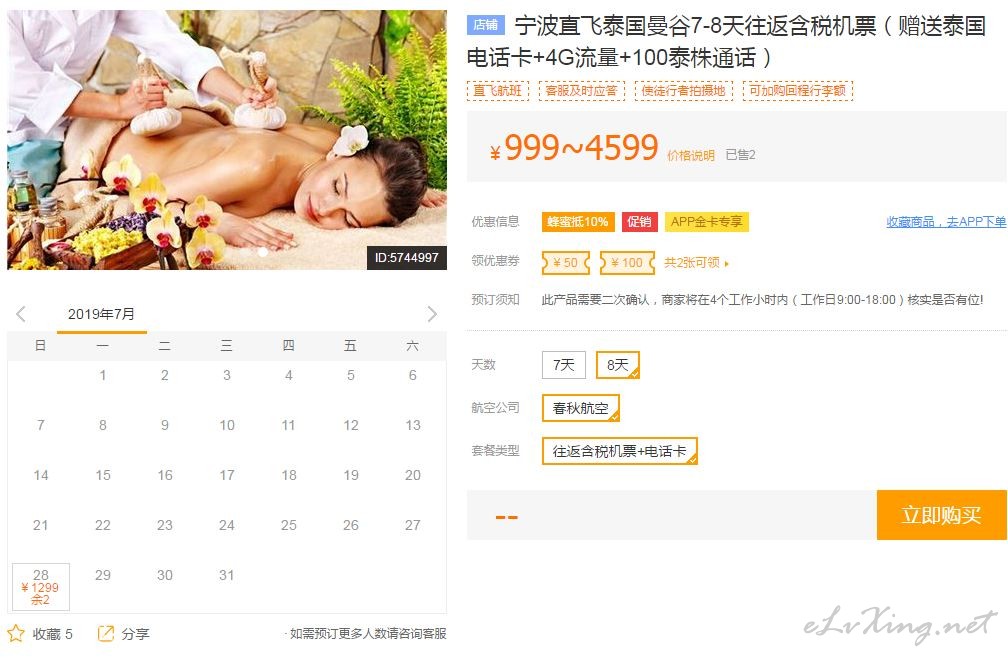 7月28日 宁波直飞曼谷8天往返含税机票+电话卡 1299元 ...