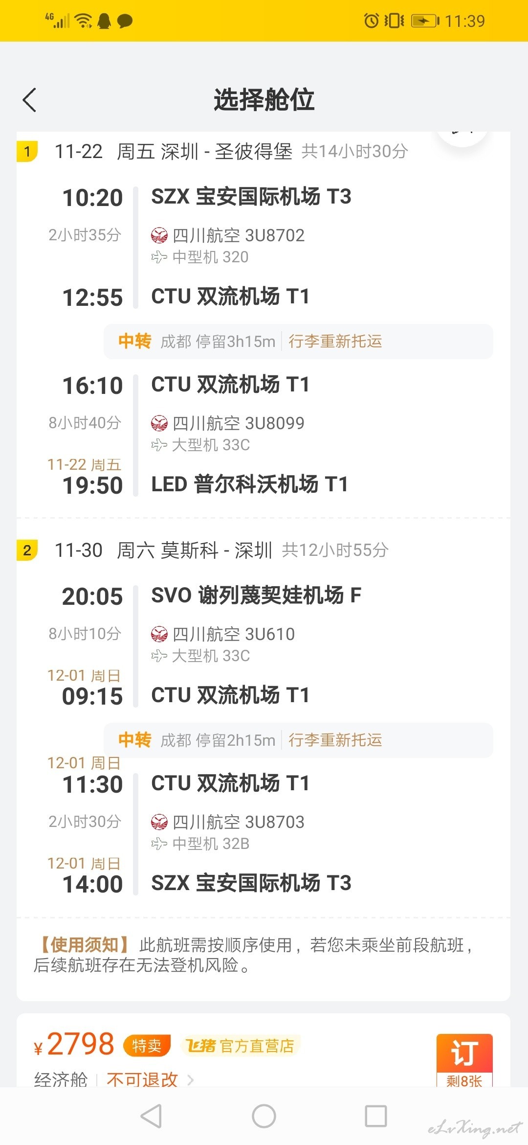 无意间在飞猪发现这机票,还挺划算的,去圣彼得堡,回从莫斯科走。