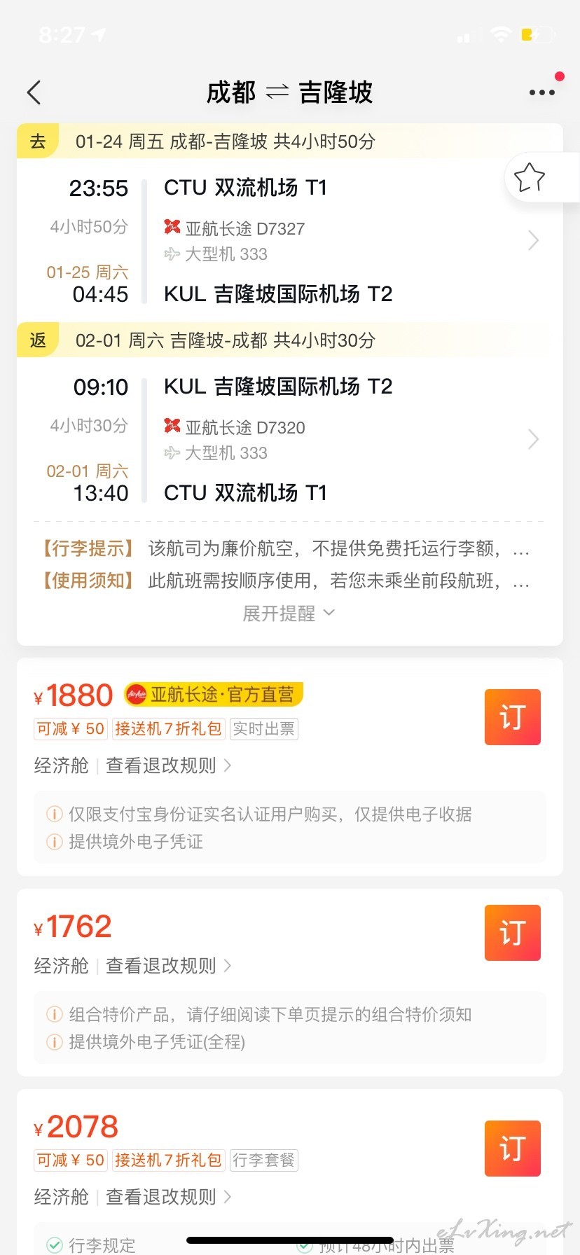 看到时候只有1900了,买了提前两天走的下午航班 1900 往返 还是可以了,谢谢 |