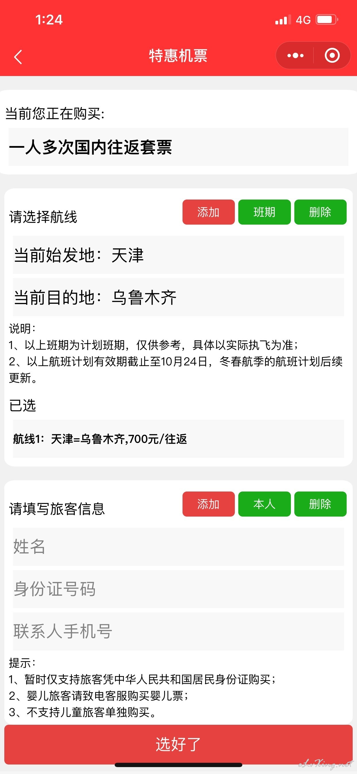 再补充一点:套票不含行李,天航全部航段行李票10公斤80元 |