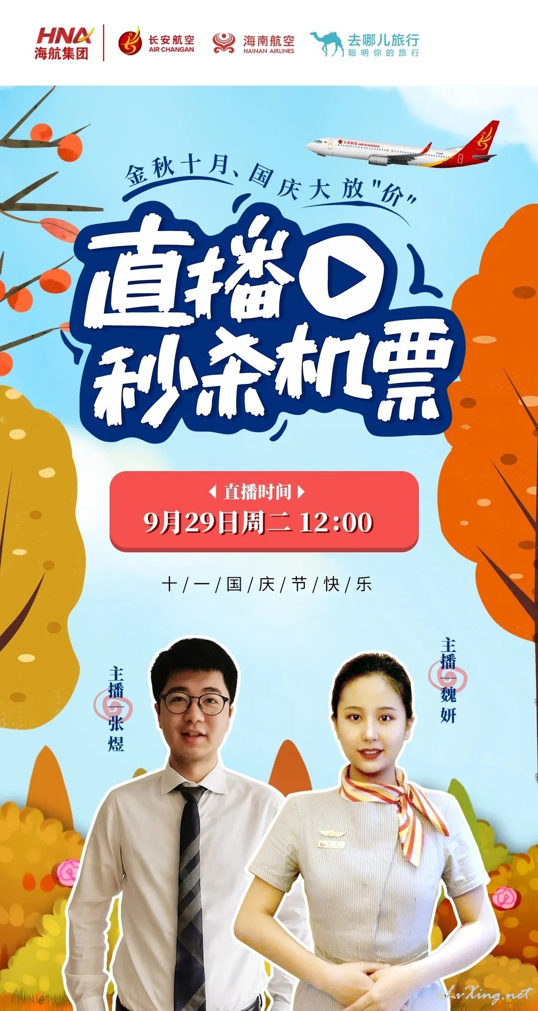 精选长安航空航线30余条航线 直播间专属秒杀价格59元起