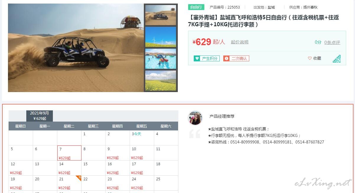 9月多日 盐城直飞呼和浩特5日往返含税机票 629元 ...