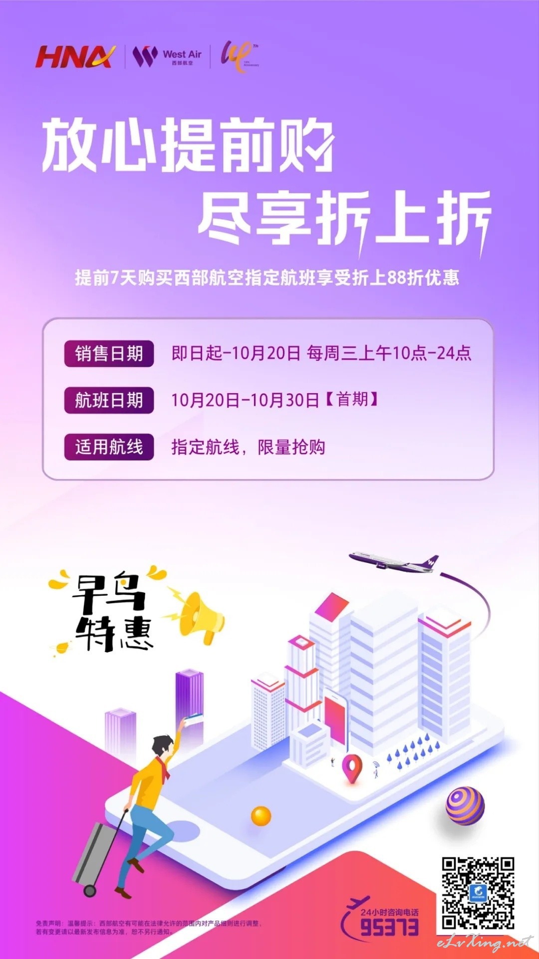 “提前购”产品规则 1、提前7天购买西部航空指定航班享受折上88折优惠,打折后四舍五入至十位。(例如:10月1日可购买10月8日及之后航班的提前购产品,如预定时外放最低价格是500元,则提前购产品的价格为440元。) ...