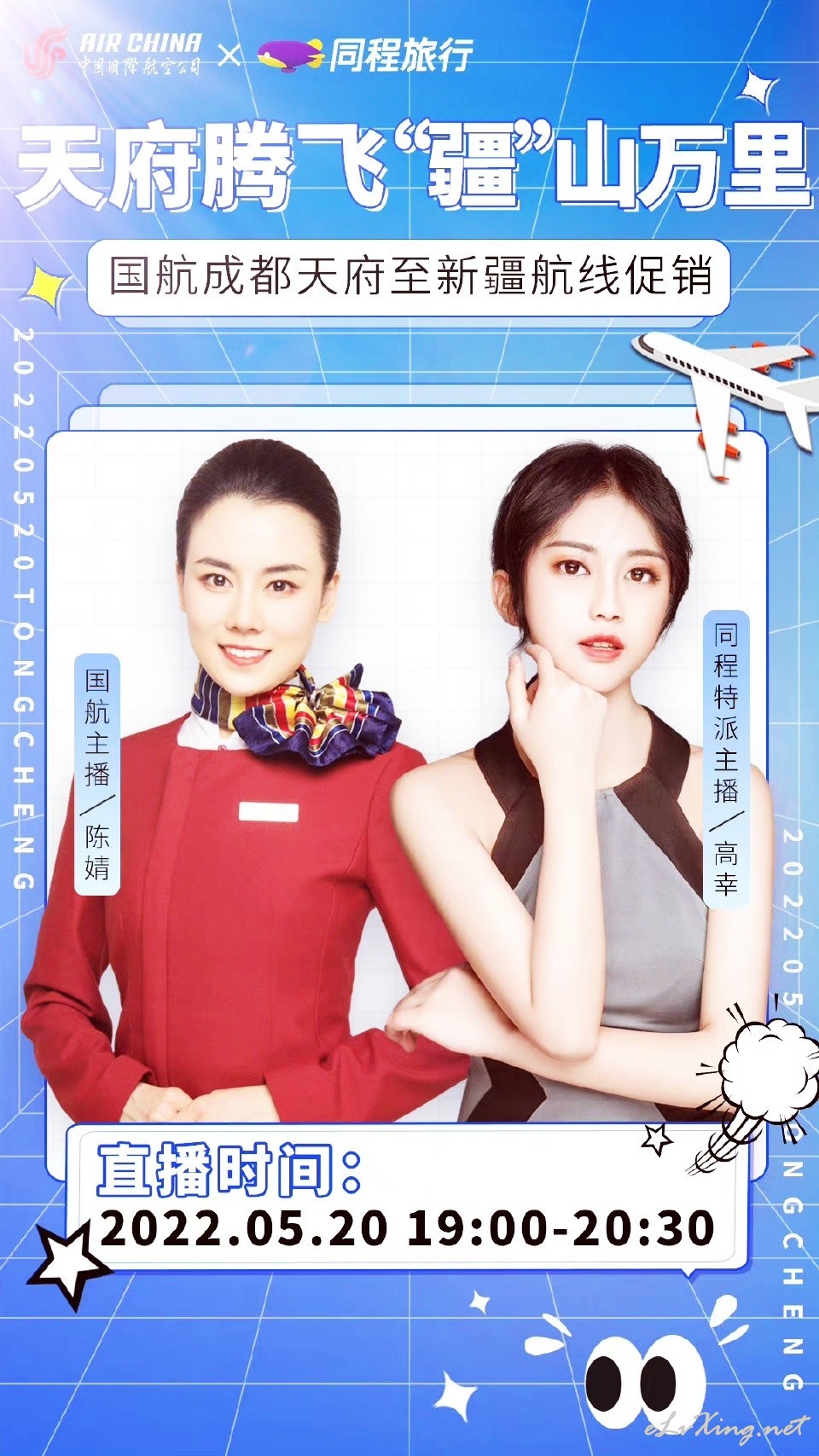 天府腾飞,疆山万里!同程旅行 & 中国国际航空 成都-新疆专场联合直播来啦! 精心挑选的三大游疆路线,超多特价机票和福利活动,数十条航线,秒杀好价低至400元! 直播地址:同程旅行微信公众号-直播区 ...
