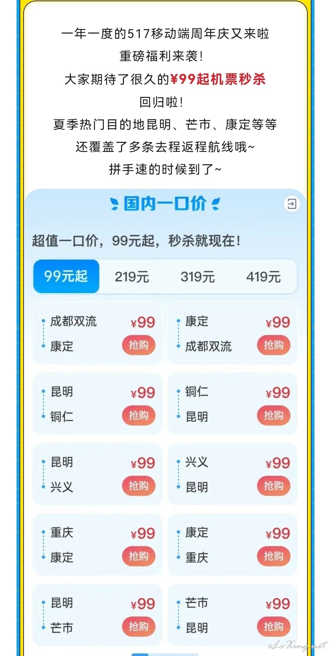 秒杀时间:17日10:00-19日23:00 秒杀地址:川航官网 活动链接 https://mp.weixin.qq.com/s/MODWSXm91ugiVRb9-ZG7dQ