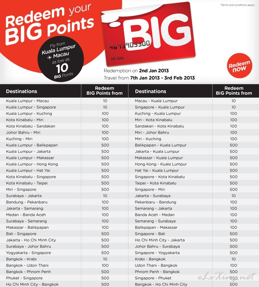 @E旅行网 最近BIG积分兑换 10point 吉隆坡-澳门 兑换时间:2013.1.2 飞行时段: 2013.1.7-2.3 https://loyalty.airasia.com/BIG/aa/Flight.aspx