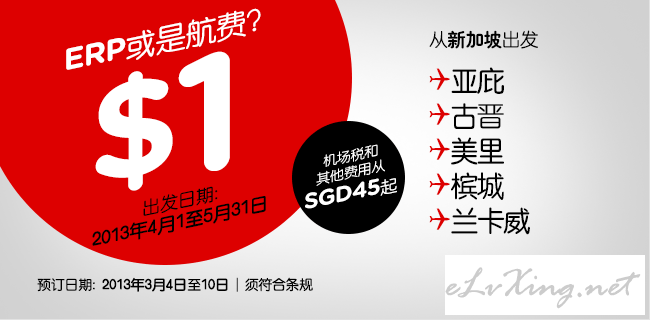新加坡——亚庇/古晋/美里/槟城/兰卡威 清一色1元票