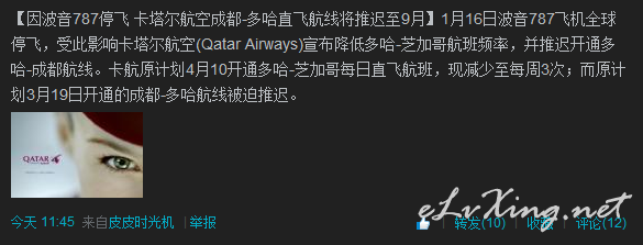 因波音787停检造成运力不足,卡塔尔航空被迫将原定于3月19日开通的成都=多哈航线推迟至9月3日开通。