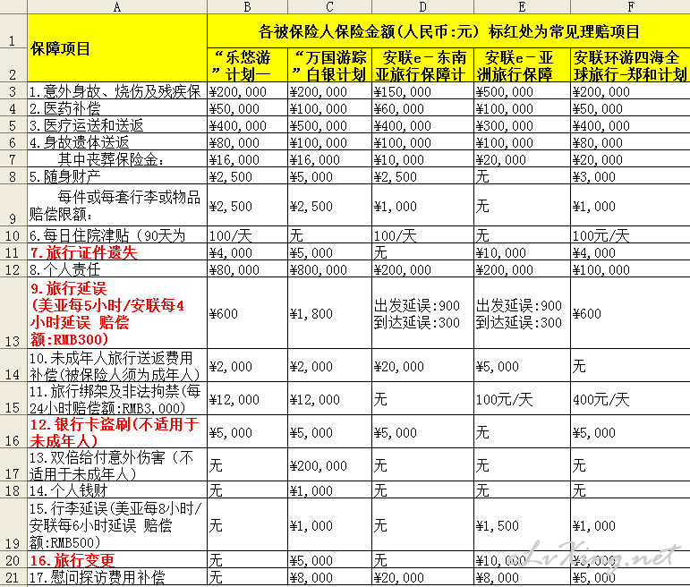 | 保险对比,留档 |