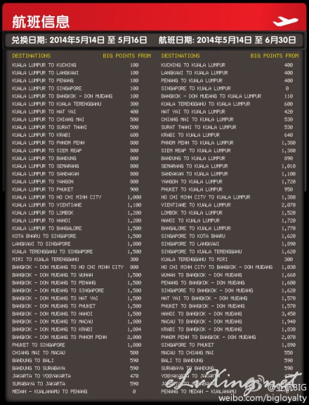 本帖最后由 E旅行新闻官 于 2014-5-14 08:56 编辑 【兑换日期】5月14日-5月16日 【航班日期】5月14日-6月30日 【兑换地址】https://www.tune2big.com/web/guest/login 【兑换详情】 槟城-棉兰 0 ...