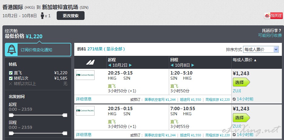本帖最后由 Zz-hi 于 2014-8-22 12:47 编辑 10.2-10.8 国庆这个价格还不错吧,当天有很多时间段可以选择,和同时段酷航差不多的价格。超喜欢国泰,ZUJI出票。 ...